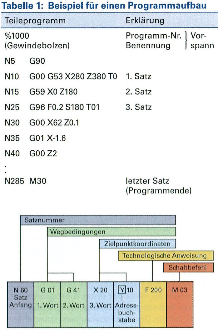 Aby obrabiany przedmiot mógł zostać wyprodukowany na maszynie CNC, jednostka sterująca wymaga programu. Program CNC zgodny z normą DIN 66025 zawiera wszystkie informacje o ścieżce i przełączaniu, a także polecenia pomocnicze wymagane do obróbki i może być odczytany przez dowolną maszynę CNC.