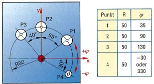 Obraz: Okrąg otworu na śrubę ze współrzędnymi biegunowymi